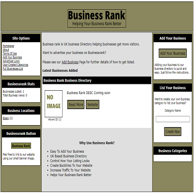 Business Rank Directory Is a new Uk based directory allowing UK businesses to advertise their business.